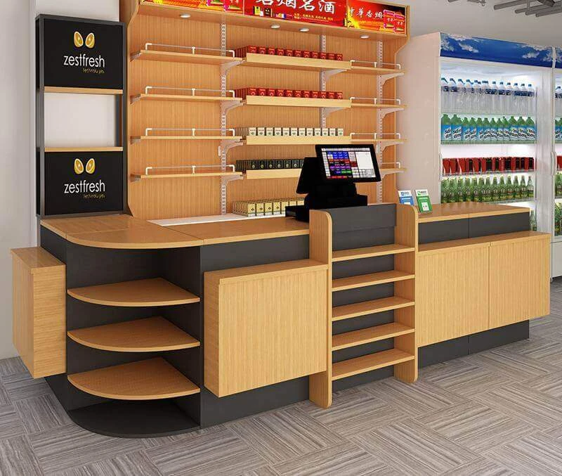 Mặt bàn phẳng, rộng chứa được nhiều đồ cộng với việc bổ trí máy POS ở chính giữa nên việc thanh toán cũng trở nên nhanh chóng hơn, hạn chế tình trạng ùn tắc, chen lấn. Mặt trong được thiết kế gồm các hộc liền & ngăn kéo để đựng đồ cá nhân, tiền,.. cực kỳ tiện lợi.