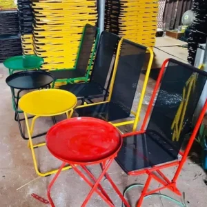- Màu sắc: ghế màu đen, vàng, bàn màu đỏ, vàng (có thể thay đổi màu sắc theo yêu cầu)