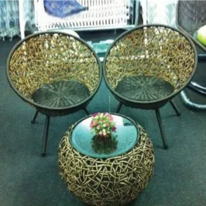 - Chất liệu: thép chống gỉ, kết hợp sợi nhựa PE giả mây