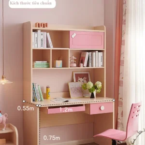 Bộ bàn học được thiết kế với màu sắc nhẹ nhàng phù hợp với không gian học tập của các bé gái