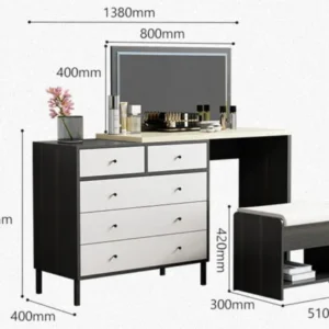 - Kích thước bàn phấn (Dài x Rộng x Cao): 1,38m x 0,4m x 0,78m