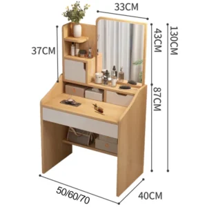 - Kích thước bàn trang điểm (Dài x Rộng x Cao): 0,9m x 0,4m x 1m4