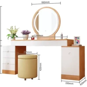 - Kích thước bàn phấn (Dài x Rộng x Cao): 0,8m x 0,5m x 0,75m (có thể tùy chỉnh theo yêu cầu)