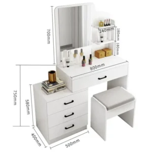 - Kích thước bàn trang điểm (Dài x Rộng x Cao): 0,8m x 0,4m x 1m4