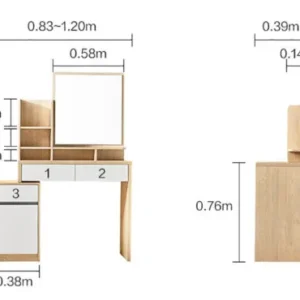 - Kích thước bàn trang điểm (Dài x Rộng x Cao): 1m x 0,4m x 1m35