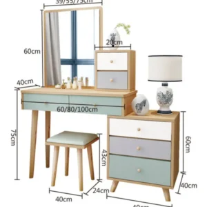 - Kích thước bàn trang điểm (Dài x Rộng x Cao): 0,8m x 0,4m x 0,75m