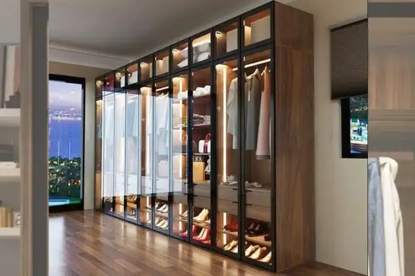 - Chất liệu Tủ quần áo đẹp hiện đại: Kính cường lực