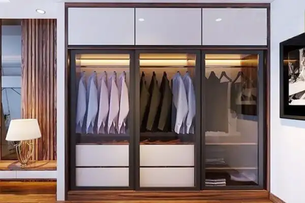 - Chất liệu: Cánh kính cường lực, khung tủ bằng nhôm