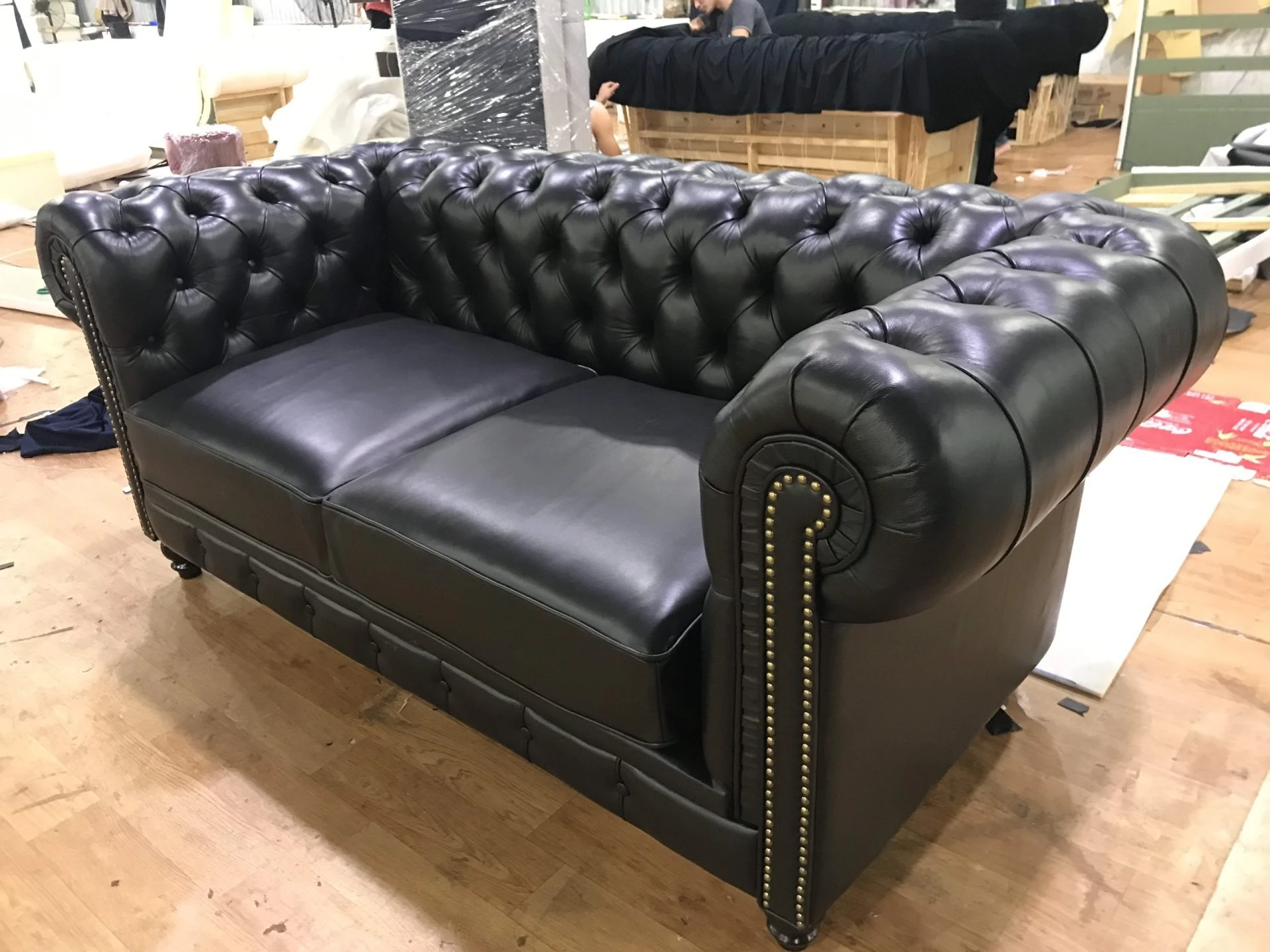 - Chất liệu đệm: Đệm lò so bọc da bò tự nhiên
